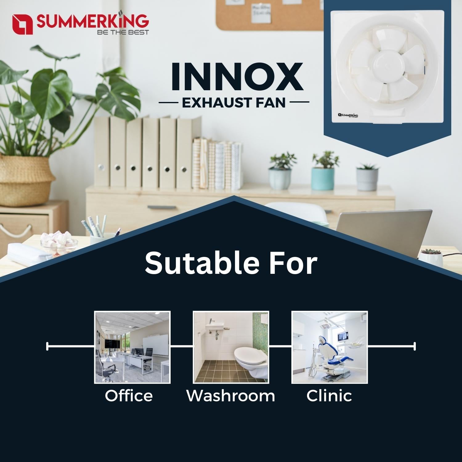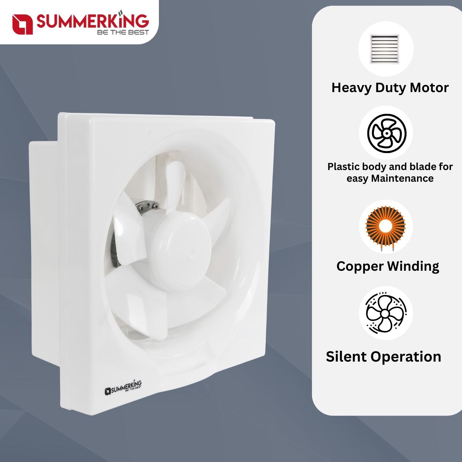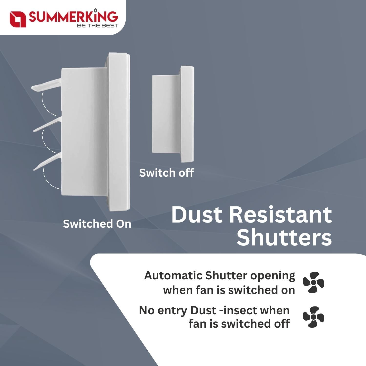 Copper Winding | Shutter to prevent dust | Silent Operation | Plastic body and blade for easy Maintenance.