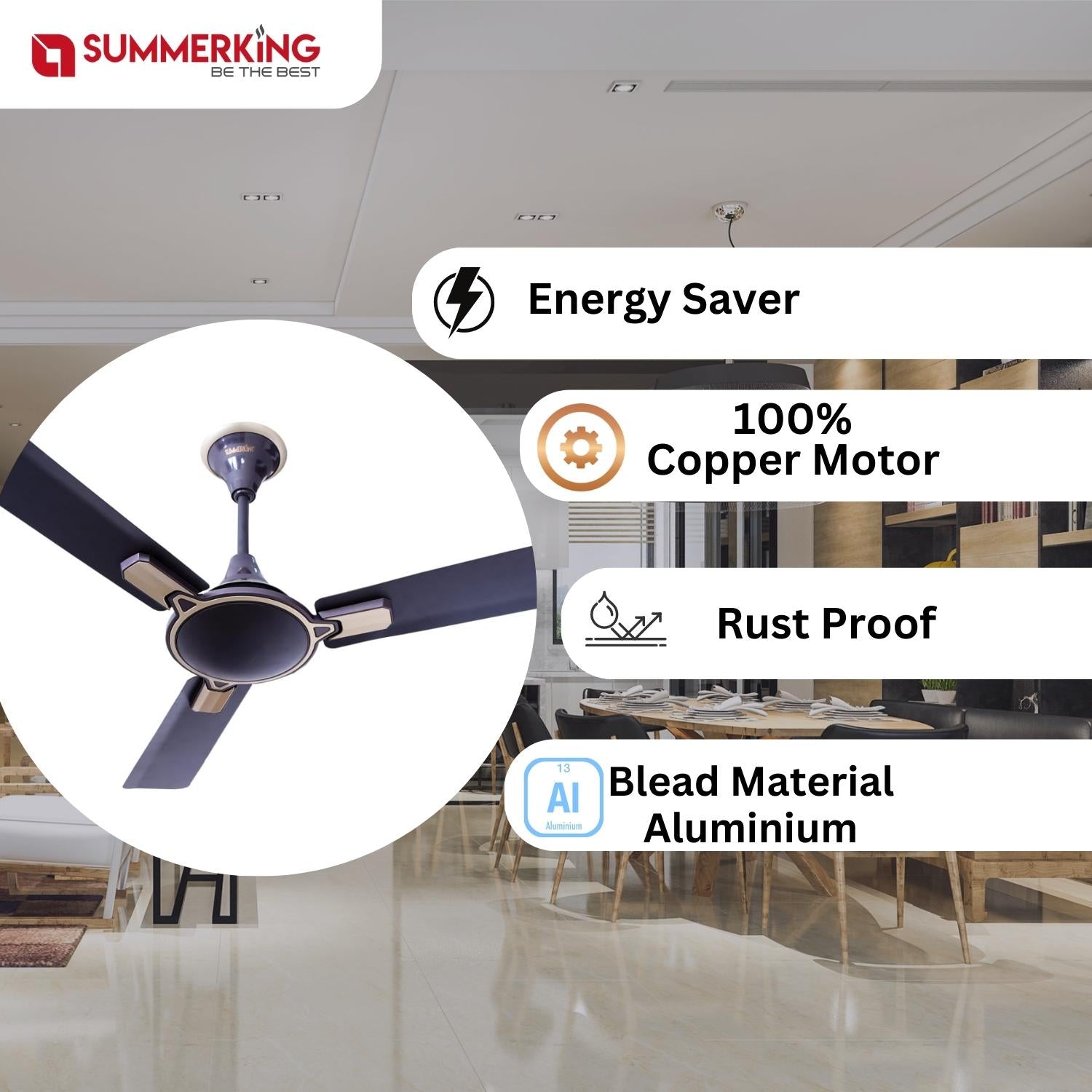 Stay cool in the summer with the Summerking Oxirich 1200mm Premium Ceiling Fan. Featuring Copper CNC Winding, this fan produces powerful airflow with a quiet, efficient performance. Shop now to get the lowest price online with premium deals and discounts.