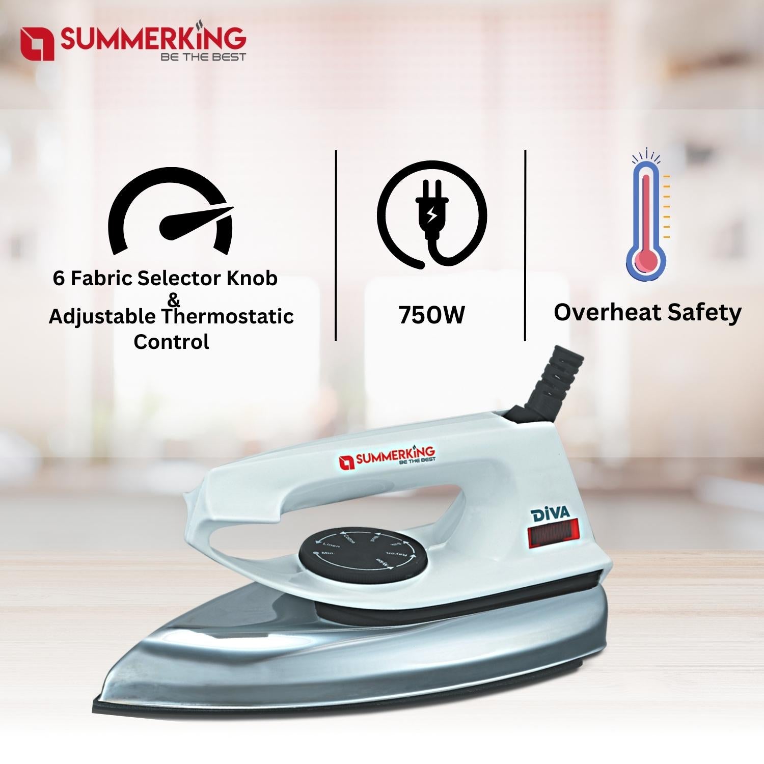 SUMMERKING Combo Pack of Candy 500W Mixer Grinder with 2 Stainless Steel Jar and Diva 750W Dry Iron